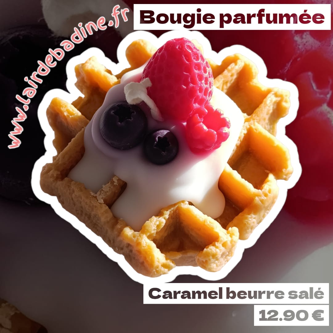 La bougie parfumée caramel au beurre salé est un véritable délice olfactif et visuel. Grâce à sa forme de gaufre décorée de chantilly et de fruits rouges, elle attire autant par son design unique que par son parfum riche et addictif. Idéale pour parfumer son intérieur d’une ambiance gourmande et chaleureuse, elle constitue également un cadeau original et raffiné.