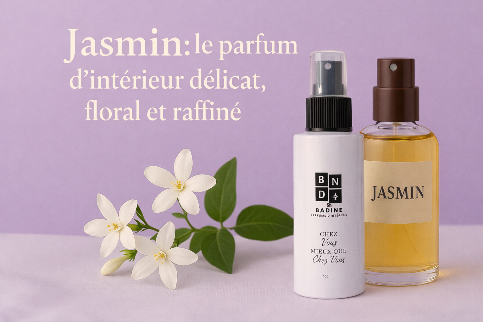 100 ml – Flacon blanc recyclable – Packaging élégant en carton – Spray jasmin